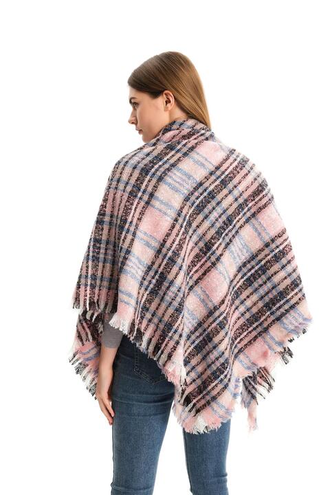 Plaid Raw Hem Polyester Scarf