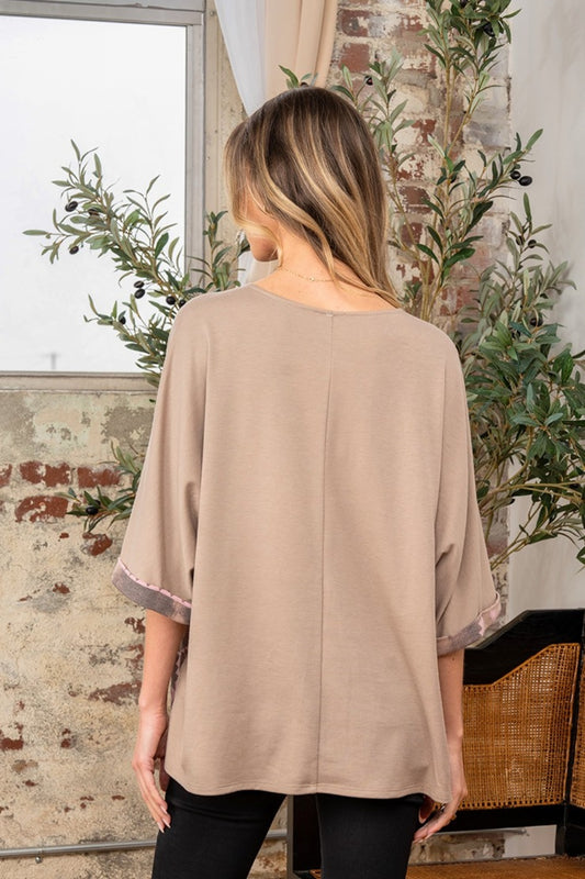 POL Oversize V-Neck Crochet Lace Contrast Studded Top
