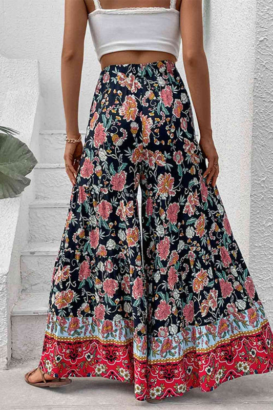 Bohemian Patchwork Drawstring Wide Leg Pants